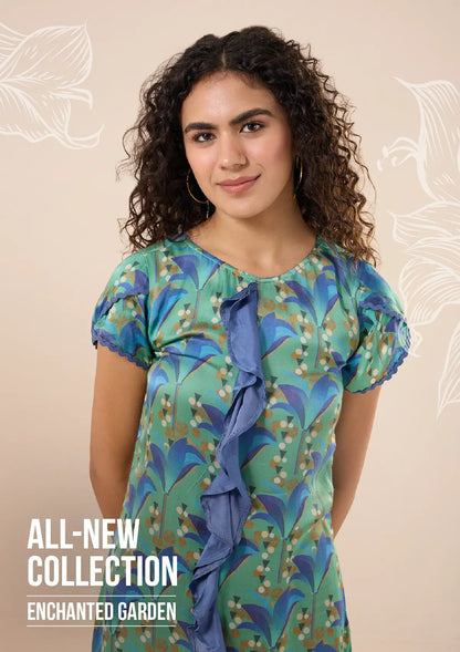 A perfect blend of romanticsm and modern style, this dress from our Enchanted Garden collection is a true statement piece. Crafted in a beautiful bright green, it features a flowy A-line silhouette which creates graceful movement.