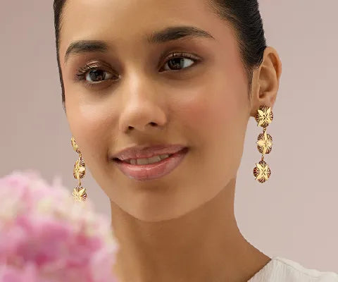 This earring shines even brighter when paired with our 18K gold plated adjustable Pod cutwork ring, reminding us of art in nature
