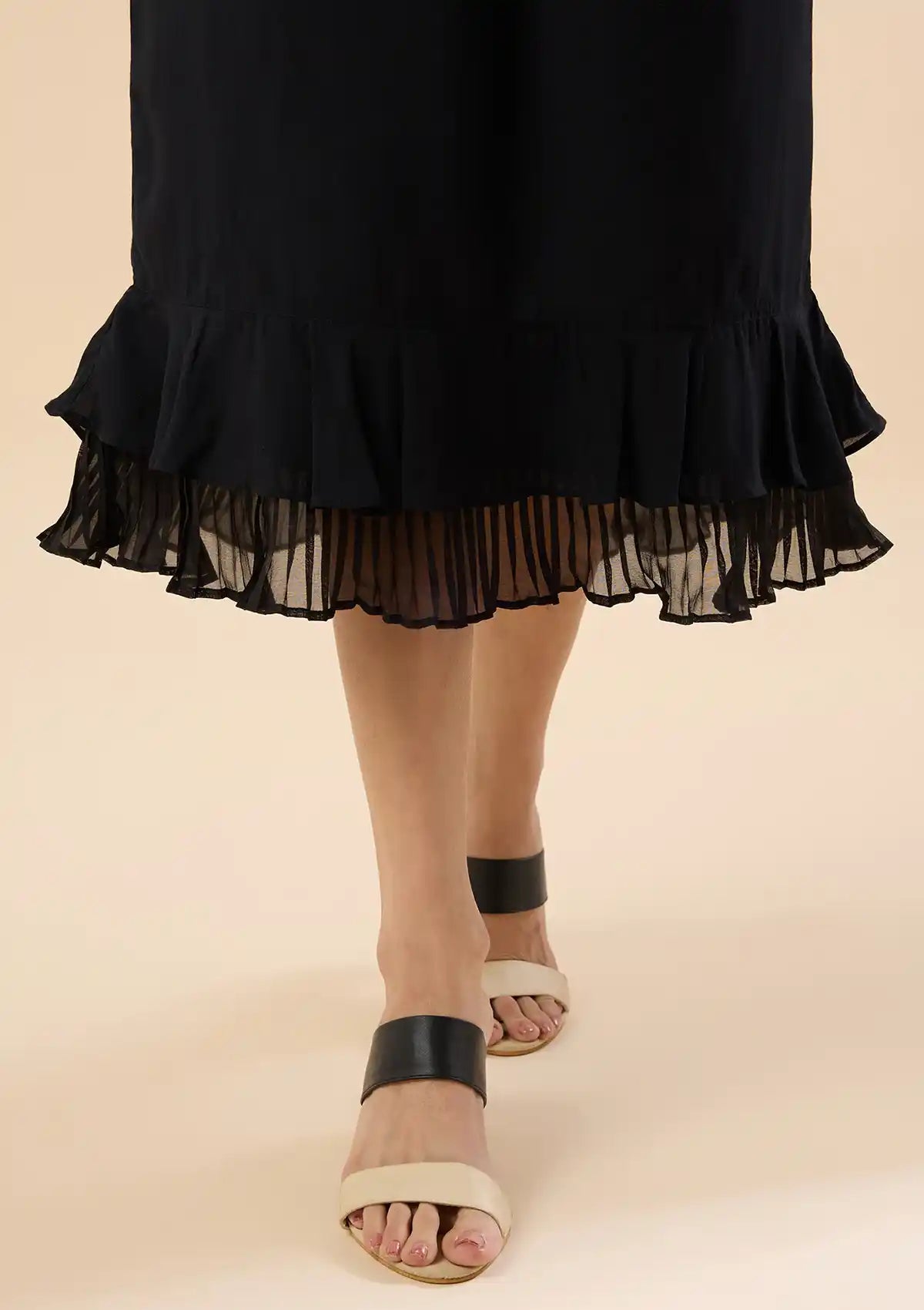 Zaynab - Black Pleated Hem Trumpet Skirt