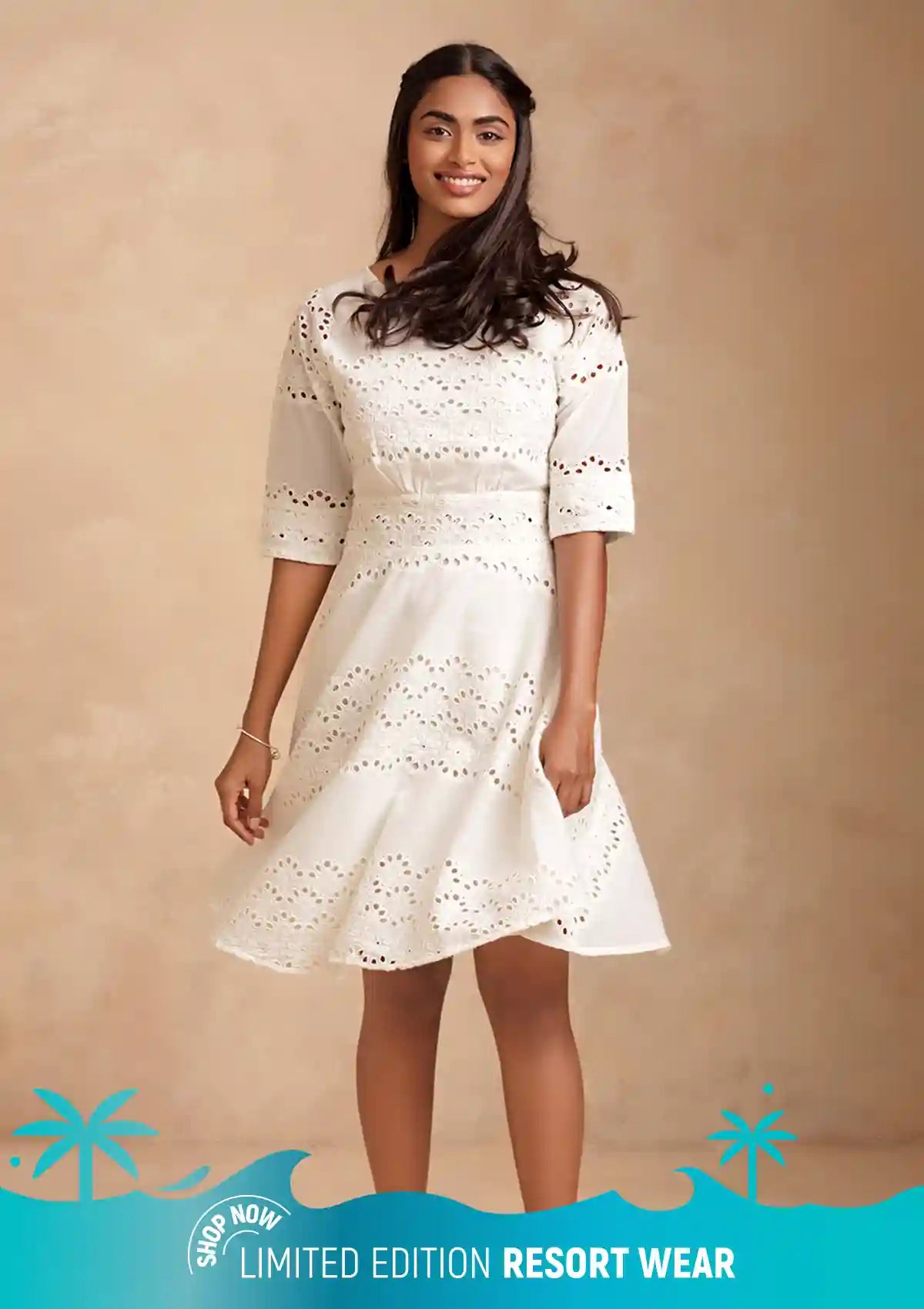 Several design variations in white frocks for women have gained popularity like the tier dresses that add a dynamic element to your outfit. Bohemian inspired crochet laces, wrap dresses are versatile choices. Intricate surface detailing and midi lengths remain stylish choices for different occasions and casual outings.Â