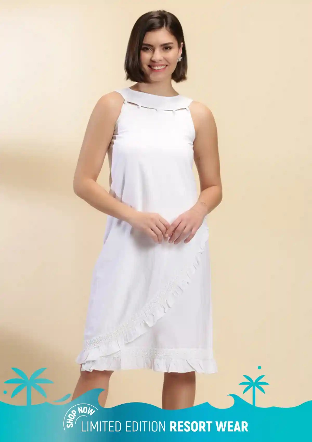 The latest trends in white dresses for women embrace romantic detailing like ruffles and puff sleeves. Cottage core aesthetics like flowy silhouettes, intricate embroidery accents, and classic A-line dresses are universally flattering and versatile throughout the seasons.Â