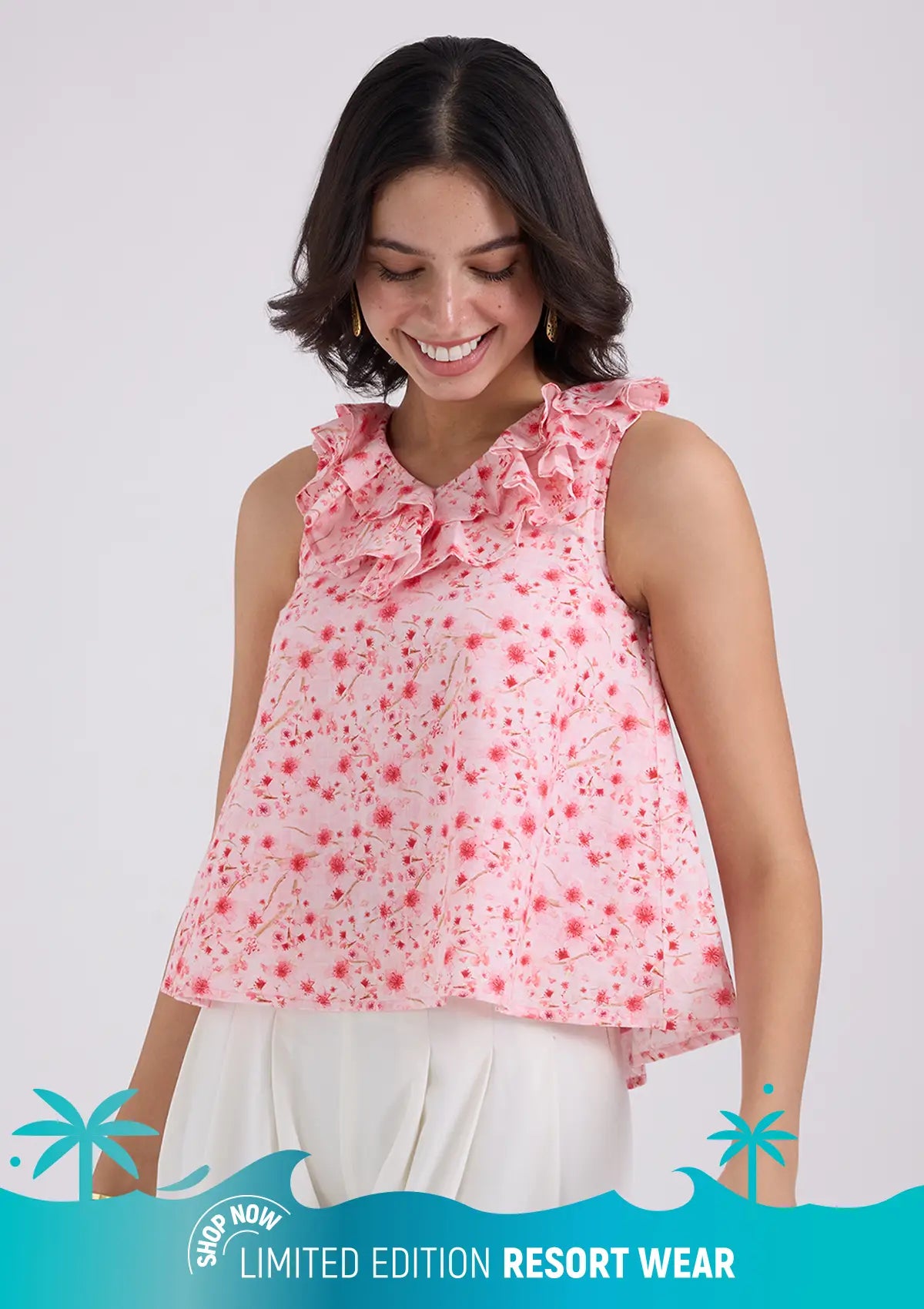 Fiesta Mexique - Pink overlap Top & Printed Tier Skirt set