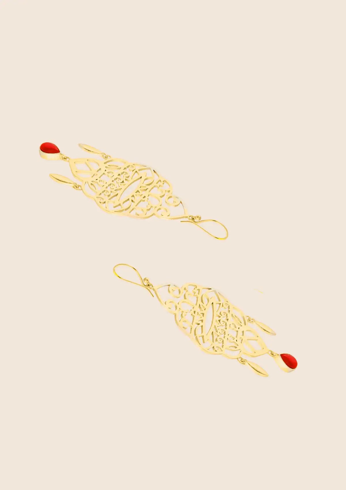 Coral Drop Filigree Earring