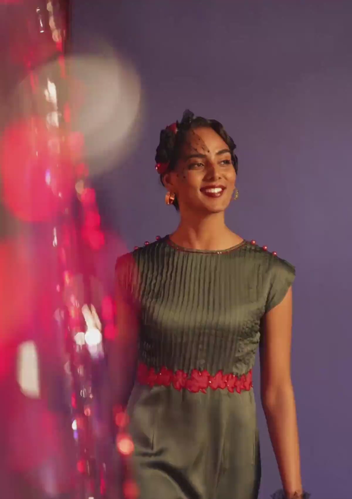 Emerald Dew - Dark Olive Butter Crepe Cocktail Dress