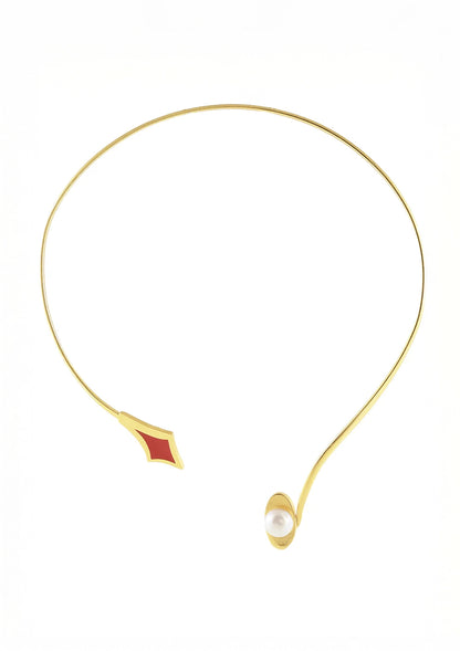 Enamel Pearl Gold Plated Choker