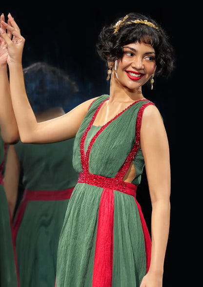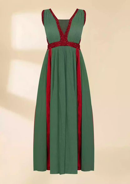 Frosted Wine - Dark Olive Crinkled Viscose Party Dress