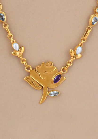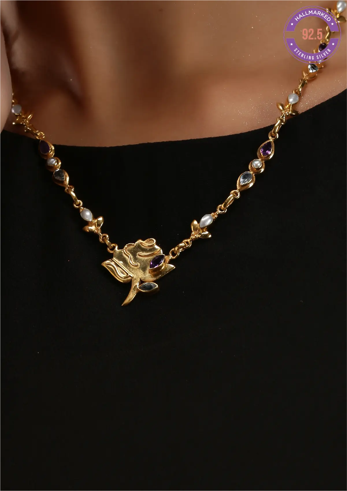 Silver Necklace with Amethyst, Blue Topaz and Pearls