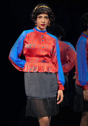 Maraschino Night - Abstract Printed Frilled Neckline Top