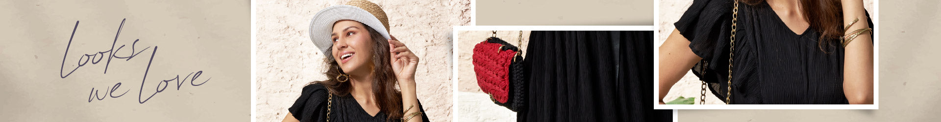 - Let your style speak for itself with this super chic combo of Midnight Chic Dress, Black and red Mini Bag, and Gold Plated Celestial Hoops.